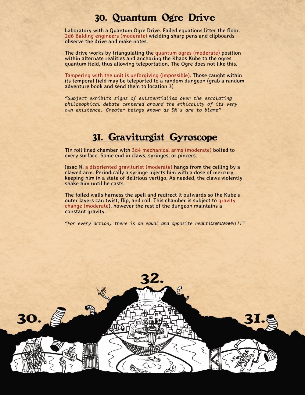 The 2025 Chaos Megadungeon Collaborative was a celebratory game jam hosted by the Peasantry TTRPG community. Each participant was tasked with designing a single room for the dungeon, which was later collaged into a giant map. The goal of the event was to create a wild and chaotic experience built on the minds of numerous ttrpg enthusiasts, game masters, and game designers. Each room should feel unique and different from the last, players should never be able to expect what will come next, only hope that it was forgiving.